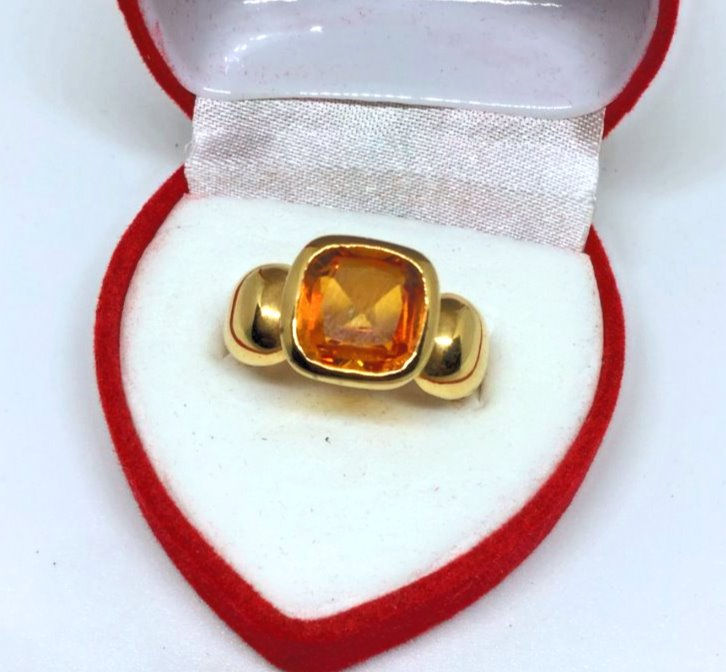 Bague plaquée or topaze carré
